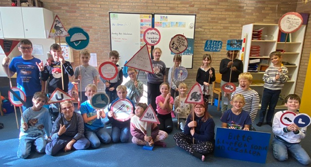 Im Rahmen der Verkehrserziehung hat die Klasse 3a ein besonderes Projekt durchgeführt: Sie gestalteten eigene Verkehrsschilder. Ziel der Aktion war es, das Bewusstsein für Verkehrsregeln zu stärken und einen kreativen Zugang zum Thema Verkehrssicherheit zu ermöglichen. Zunächst wurden im Unterricht die wichtigsten Verkehrszeichen besprochen und deren Bedeutung erklärt. Anschließend durften die Kinder ihrer Kreativität freien Lauf lassen und eigene Schilder entwerfen - manche orientierten sich an bekannten Zeichen, andere entwickelten völlig neue Ideen, um auf sicheres Verhalten im Straßenverkehr oder auch im Umfeld aufmerksam zu machen. Die Schülerinnen und Schüler waren stolz auf ihre Ergebnisse und lernten dabei spielerisch, wie wichtig Regeln und gegenseitige Rücksichtnahme sind.